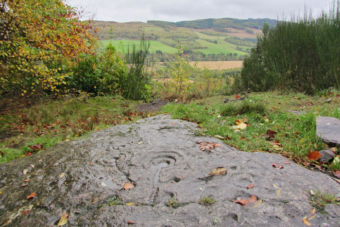 A short, steep climb to St David’s Well and a series of carvings in the